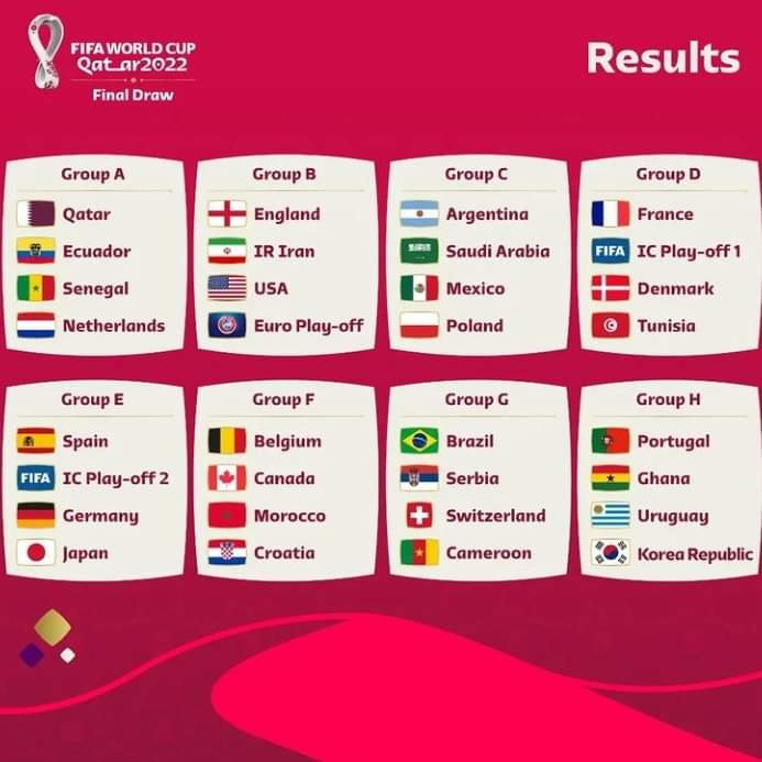 Jakarta – Bertempat di Doha Exhibition and Convention Center, Qatar, pada Jumat (1/4/2022) malam WIB, FIFA melakukan drawing Piala Dunia 2022 yang akan digelar pada akhir tahun ini. Hasilnya tidak banyak kejuatan yang terjadi. Pemisahan tim unggulan di POT 1 dan POT 2 berhasil menghindarkan para tim unggulan bertemu di fase grup. Namun pertemuan dua mantan Juara Dunia, Spanyol dan Jerman tidak dapat terhindarkan di Grup E.