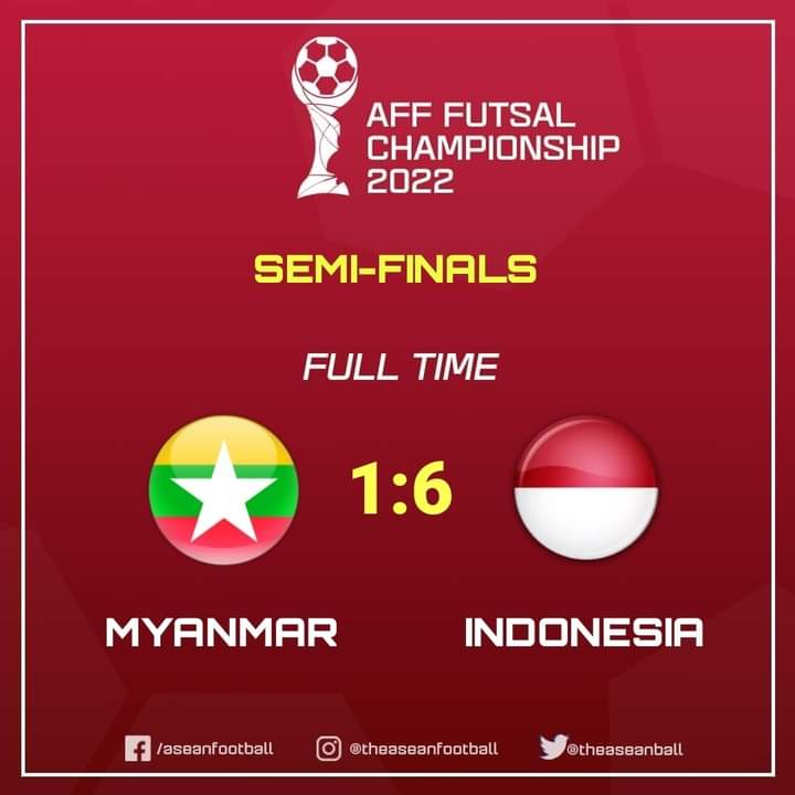 Jakarta – Sempat mendapat kesulitan pada awal pertandingan yang berlangsung di Indoor Stadium Huamark, Bangkok, Thailand, Jumat (8/4/2022), timnas Indonesia berhasil lolos ke final AFF Futsal Championship 2022. Skuad Garuda menjaga peluang meraih gelar juara setelah mengalahkan Myanmar 6-1. Timnas Indonesia hanya mampu mencetak satu gol di babak pertama, namun kemudian mengamuk dan mencetak lima gol tambahan untuk mengalahkan Myamnar yang masuk semifinal sebagai juara Grup B.