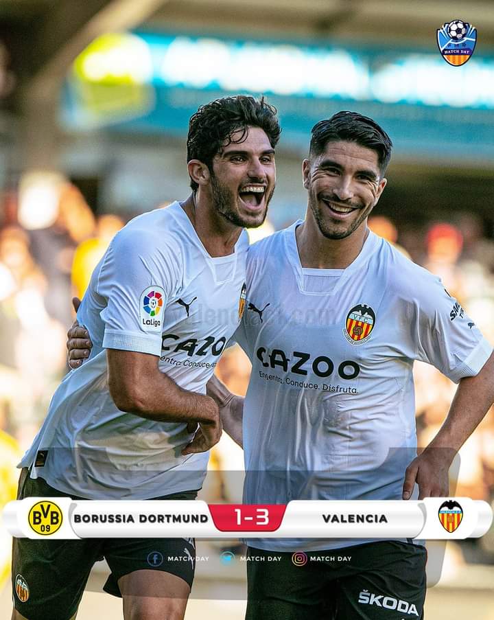 Namun tujuh menit berselang, Valencia berhasil kembali unggul melalui tembakan kaki kanan Marcos Andre. Thierry Correia yang sebelumnya menjadi kambing hitam penalti Dortmund membayar kesalahannya kala mencetak assist pada gol tersebut. Pada menit 62, Goncalo Guedes melengkapi brace-nya kala berhasil menambah keunggulan Valencia. Tak tanggung-tanggung, pemain asal Portugal itu mencetak gol indah dari luar kotak penalti, skor berubah menjadi 3-1 dan mengakhiri laga persahabatan ini,