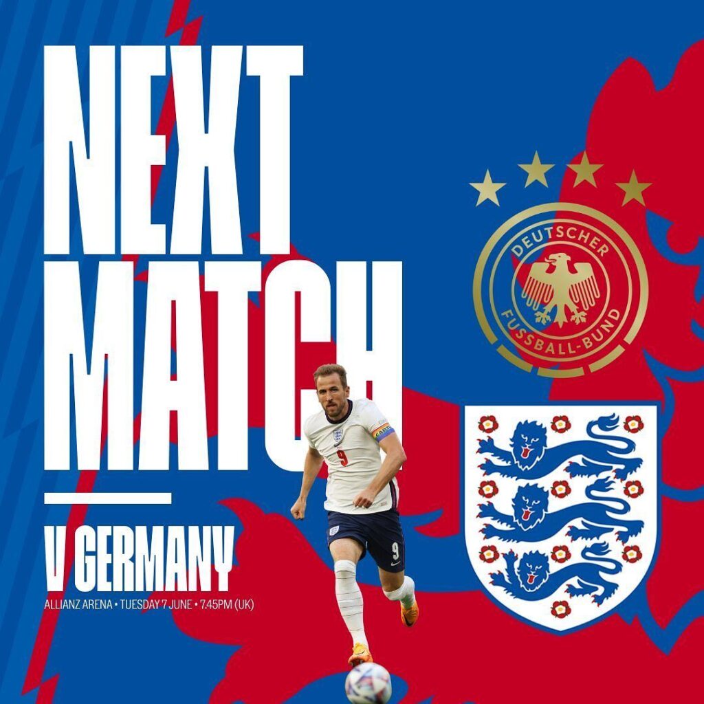 Namun laga yang akan digelar dini hari nanti akan berbeda karena hasil laga itu tidak lagi menentukan bagi kedua tim. Inggris akan menjamu Jerman pada matchday pemungkas Grup 3 UEFA Nations League A 2022/2023. Pertandingan di Wembley Stadium ini dijadwalkan kick-off Selasa, 27 September 2022, jam 01:45 WIB. Inggris sudah dipastikan terdegradasi ke UEFA Nations League B. Sementara itu, Jerman hanya bisa finis maksimal peringkat dua di grup mereka.