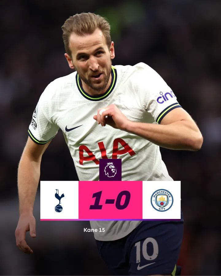 Jakarta – Tottenham Hotspur berhasil menumbangkan Manchester City lewat gol bersejarah Harry Kane, Minggu (5/2) malam WIB. Striker 29 tahun tersebut mendapatkan bola dari Pierre-Emile Hojbjerg yang memotong umpan Rodri di depan kotak penalti Man City. Ia lalu melepaskan tembakan keras yang tak bisa dihalau Ederson pada menit ke-15. Gol Harry Kane ini juga menjadi satu satunya gol di laga Big Match Liga Primer di akhir pekan ini.