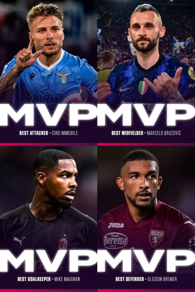 Sebelum laga putaran terakhir digelar, pihak panita kompetisi Serie A telah mengumumkan nama nama pemain terbaik yang bermain di Serie A sepanjang musim 2021/2022 ini. Yang mengejutkan tidak ada nama pemain dari tim papan atas seperti Napoli dan Juventus yang menjadi pemain terbaik musim ini. Berikut nama nama para pemain terbaik Serie A musim ini: