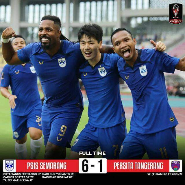 JAkarta – Tim yang kini menjadi tim bertabur bintang, PSIS Semarang berhasil unjuk gigi di ajang Piala Presiden 2022. Usaha PSIS mendatangkan para pemain asing terbaik di Liga 1 BRI yang lalu membuahkan hasil manis, Para striker yang memecahkan transfer termahal pemain asig di Indomesia itu berhasil mencetak gol saat membantai Persita Tangerang 6-1.