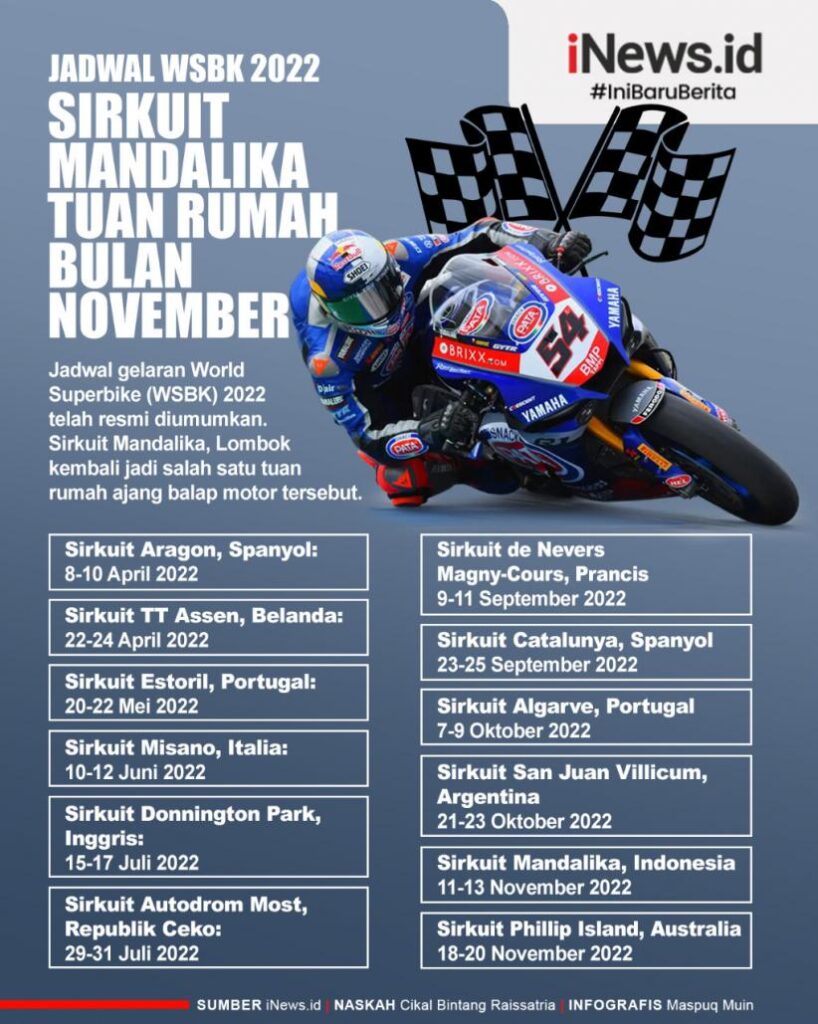 Jakarta – Ajang World Superbike musim 2022 saat ini akan mengelar seri ke 8 di Catalunya 23-25 September akhir pekan ini. Usai seri Catalunya, masih ada 4 seri tersisa di musim ini, termasuk seri ke 11 di Sirkuit Mandalaika, Indonesia yang sesuai jadwal akan digelar pada 11-13 November 2022 mendatang. Untuk itu sebagai tuan rumah pihak Mandalika dan pemerintah daerah NTB tengah bebenah mempersipakan diri untuk menyukseskannya.