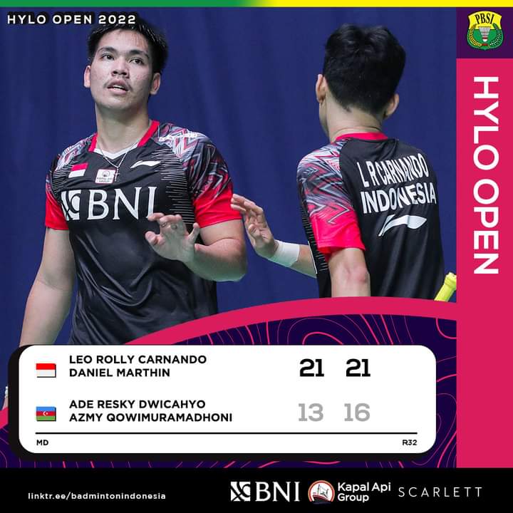 Jakarta – Satu dari dua pasangan ganda putra Indoneia yang diturunkan di Hylo Jerman Open 2022, Leo Rolly Carnando/Daniel Marthin mengalahkan Ade Resky Dwicahyo/Azmy Qowimuramadhoni pada babak 32 besar sektor ganda putra Hylo Open 2022. Bila dilihat dari nama lawan mereka, pasti banyak poiha menyangka bahwa terjadi duel sesama pemain asl Indonesia. Namun ternyata pasangan yang dihadapi Leo/Daniel adalah wakil dari Azerbaijan.