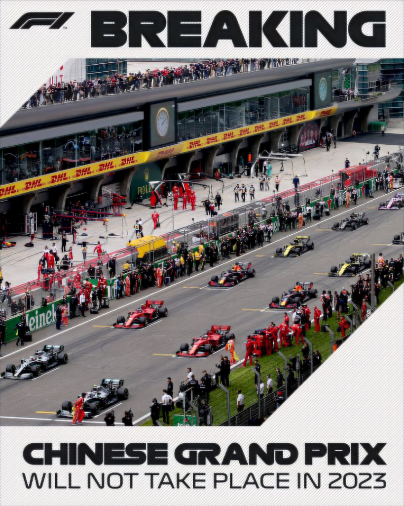 F1 sejatinya ingin menggelar 24 balapan pada 2023, tetapi Grand Prix China yang seharusnya digelar pada 14-16 April 2023 di Shanghai Park, terpaksa dibatalkan akibat kembali melonjaknya jumlah kasus Covid-19 di negara tersebut. F1 sempat berjanji akan menemukan trek pengganti Shanghai Park, calon-calonnya adalah Sirkuit Algarve, Portimao, Portugal; Sirkuit Istanbul Park, Turki; dan Sirkuit Nurburgring, Jerman.Namun, pada akhirnya mereka memutuskan hanya menggelar 23 seri saja.