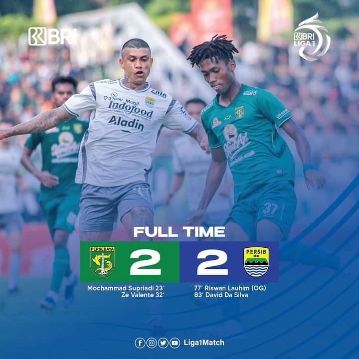 Jakarta – Persib Bandung makin berat untuk mewujudkan mimpi mereka menjuarai Liga 1 2022/23. Hal Itu terjadi setelah Maung Bandung nyaris kalah dari Persebaya Surabaya. Bertemu Persebaya di Stadion Gelora Joko Samudro, Senin (13/3) petang WIB, Persib dipaksa tertinggal 2-0 hingga babak pertema tuntas, untungnya mereka berhasil menyamakan kedudukan di babak kedua dan memaksakan hasil imbang di akhir laga. Persib gagal memanfaatkan hasil imbang yang didapat PSM saat ditahan Persita tanpa gol.