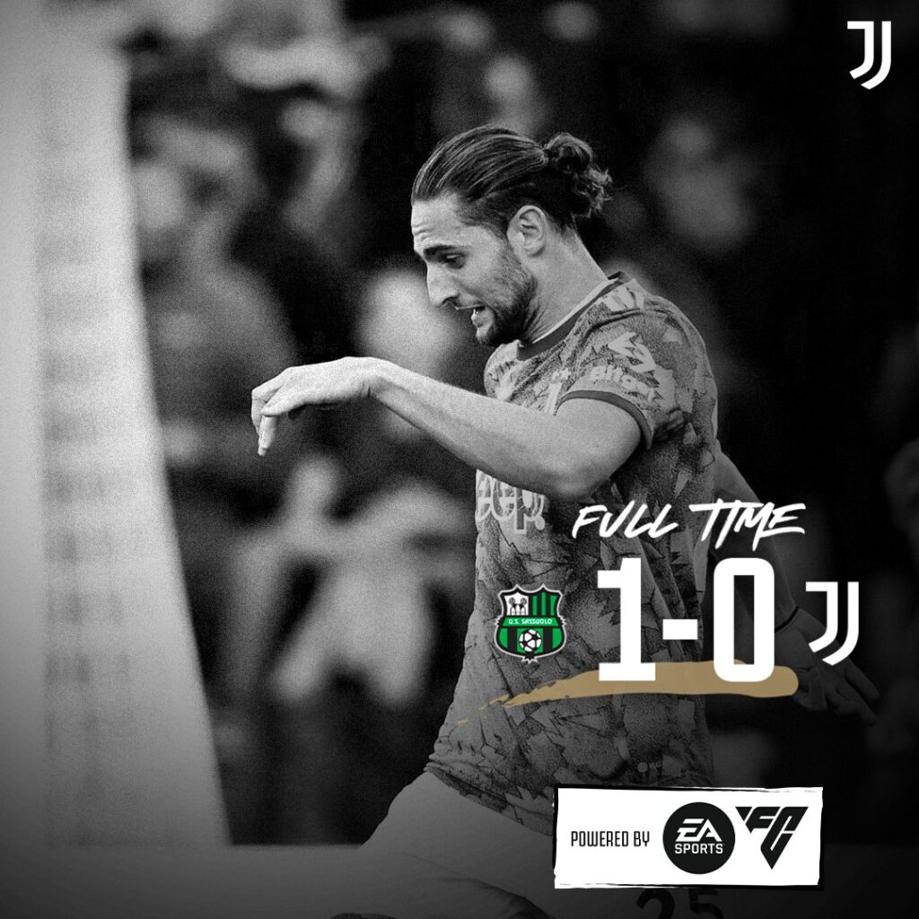 Adrien Rabiot bisa menyambut sepak pojok di tiang dekat. Namun, Andrea Consigli melakukan penyelamatan gemilang untuk mencegah gol dengan terbang menepis bola. Angel Di Maria giliran punya kesempatan usai menusuk dari sisi kiri. Upayanya juga belum berbuah hasil karena masih melambung. Juventus gagal mencetak gol penyama kedudukan meski terus mengurung Sassuolo. Neroverdi memenangi laga dengan skor 1-0.