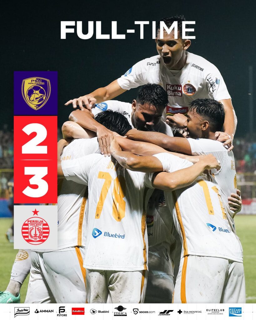 Jakarta – Persija Jakarta mengakhiri hasil lima pertandingan tanpa kemenangan setelah mempermalukan tuan rumah PSM Makassar di Stadion Gelora BJ Habibie, Jumat (3/11) malam WIB, pada matchday ke-18 Liga 1 2023/24. Persija yang kini mengoleksi nilai 23 naik ke peringkat sembilan sekaligus memaksa PSM turun ke posisi 13 dengan 22 poin. Sebaliknya, bagi PSM, kekalahan ini sangat menyakitkan. Selain sudah bangkit dengan dua kemenangan dan satu imbang, duel melawan Persija berlangsung satu hari setelah mereka merayakan hari ulang tahun klub ke-108.