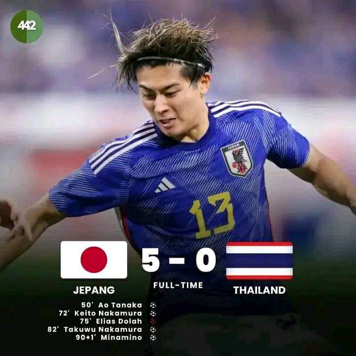 Jakarta – Jelang gelaran Piala Asia yang akan mulai digelar bulan ini, beberapa tim sudah memulai menjalani laga ujicoba sebagai pemanasan. Diantaranya adalah laga Thailand melawan Jepang. Duel di Stadion Nasional Tokyo, Tokyo, Jepang, Senin (1/1/2024) siang WIB itu berakhir dengan skor 5-0 untuk The Samurai Blue. Lima gol bagi Jepang disarangkan Ao Tanaka (50′), Keito Nakamura (72′), bunuh diri Elias Dolah (74′), Takumu Kawamura (82′), dan Takumi Minamino (90+1′). Kemenangan itu menjadi suntikan moral bagi Jepang jelang Piala Asia 2023.