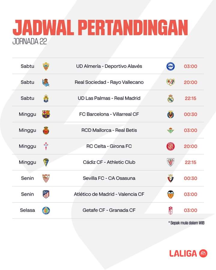 Jadwal Pekan ke-22 La Liga 2023/2024