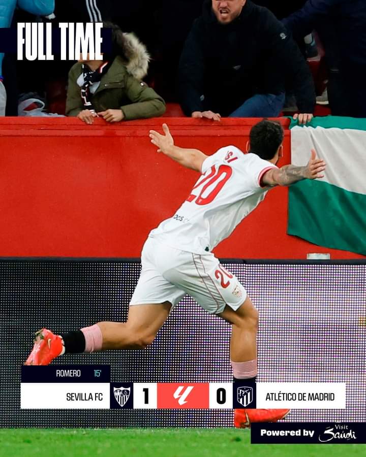 dalam laga lanjutan La Liga yang berlangsung di Ramon Sanchez-Pizjuan, Senin (12/2/2024) dini hari WIB. Tambahan tiga poin menjadi krusial bagi Sevilla yang berusaha menjauh dari zona degradasi. Palanganas, julukan Sevilla, berada di peringkat ke-15 dengan torehan 23 poin, terpaut enam poin dari Cadiz di peringkat ke-18. Sementara Atletico Madrid tertahan di posisi keempat dengan 48 poin, terpaut 13 angka dari pimpinan klasemen sementara yang juga rival sekota Atletico, Real Madrid.