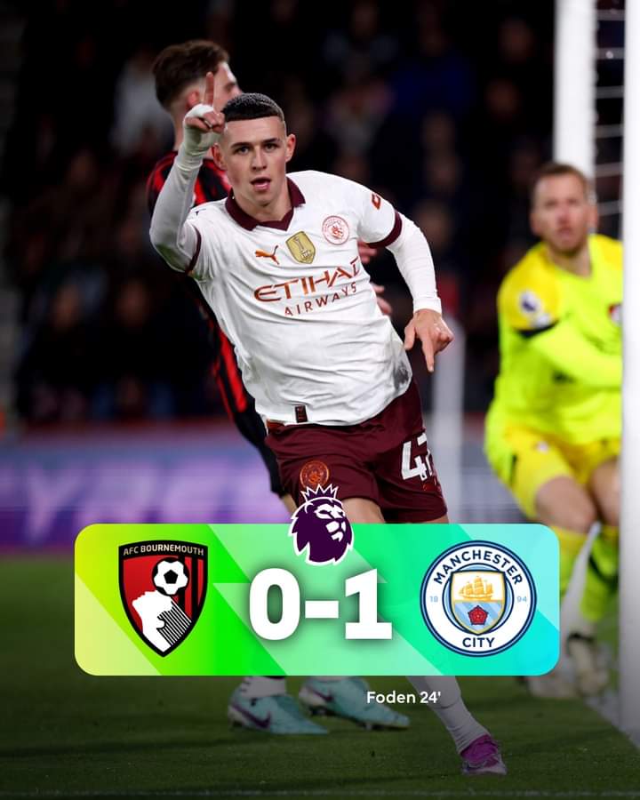 Jakarta – Performa Manchester City tidak segarang musim lalu saat mereka berhasil meraih treble winners. Dalam lanjutan laga Liga Inggris, mereka harus bersusah payah mengalahkan Bournemouth. Gol semata wayang yang diciptakan oleh Phil Foden di babak pertama sudah cukup untuk membawa City pulang dari markas Bournemouth dengan raihan poin penuh. Berkat hasil ini, City yang kini mengoleksi poin 59 pun kembali memangkas jarak dengan pemuncak klasemen, Liverpool menjadi hanya satu poin. Sementara itu, Bournemouth tercecer di peringkat 14 dengan poin 28.
