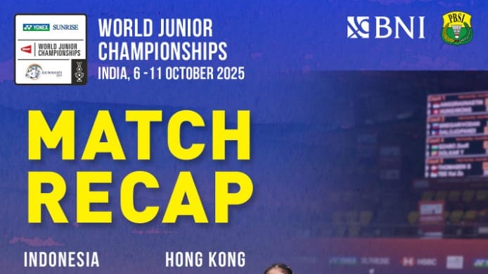 Jakarta -Tim bulu tangkis Indonesia berhasil menaklukkan Hong Kong dengan skor 2-1 (44-45, 45-37, 45-23) pada laga pamungkas Grup F Kejuaraan Dunia Beregu Junior atau World Junior Mixed Team Championships 2025 yang berlangsung di National Centre of Excellence, Guwahati, India, Rabu 8 Oktober. Dengan begitu, tim bulu tangkis Indonesia berhak melaju ke babak delapan besar.